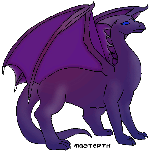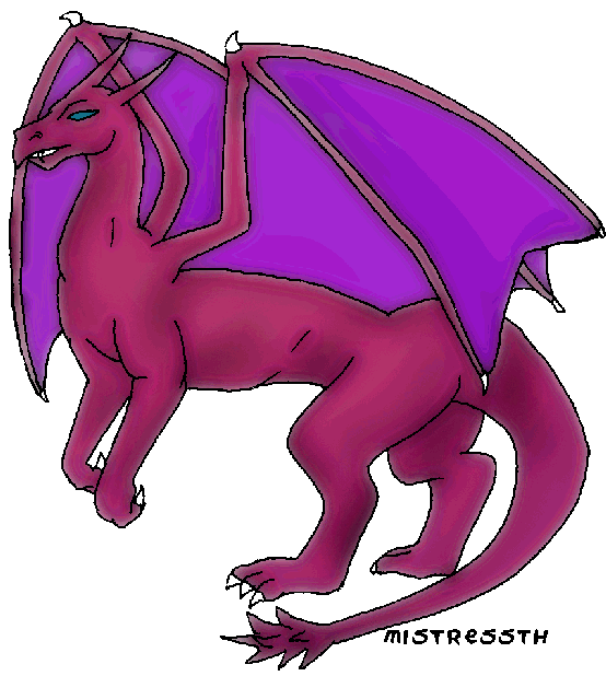 Blue Violet Masterth (M) and Red Violet Mistresseth (F) - Returned to Healing Den They came as a pair, and do nothing apart. Well, they do sometimes - when they're training separate slaves to do things for their counterpart. Who can get a servant to do the most outrageous thing, that's their quest. Both of these dragons are quite large, Masterth is 43 feet long, and Mistresseth is about 40 and bipedal. They complete each other's sentances, and often compare their gleaming hides to one another. That glimmering skin will certainly move to their offspring, if nothing else just to make them look 'shiny'. |