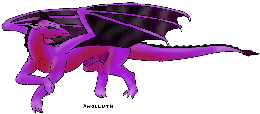 Violet Red Phalluth - going with Male Model Kyle As you can see, Phalluth is as Phalluth does. It'll take a large, strong willed female to please this two-toned dragon. He's around 32 feet long but with a dick that big you'd think it belonged to a much larger dragon. Markings and size will certainly inherit if this lovely violet male gets going. |