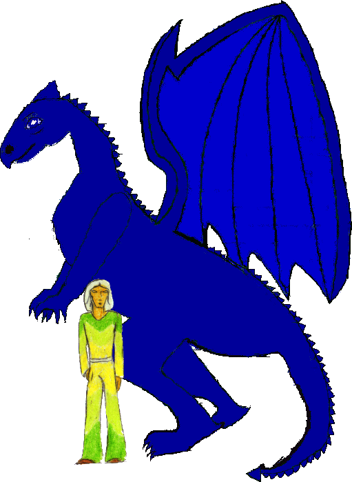 When the dragons came for Search, Arard was doing a typical afternoon work: nothing at all but looking good. He had no choice. The Weavers had done their magic on cloth and leather, and shards but they loved to see him in it! Then, the whistle went up in the courtyard that a gathering was needed. A blue rider and brown as well were there, looking about at the younger folk in the Hold, and Arard noticed that there were quite a few of the Blackstone Weyr folk present too. Then, the Brown dragon turned his heavy head at Arard, and everything changed. That one, the dragon called out, and summoned Arard by a little wink of his faceted eye. That one will do well. There are others. I will look. Arard looked at the rider, who nodded and wrote something down in a wherhide booklet. "You've been Searched, Harper! What's your name?" He paused only long enough to blink. "Arard, sir, where am I Searched to?" "Aneris Weyr," the rider said, and indicated that he'd best be packing, as there were eggs hardening on the sands there already! (Marcel's page has more) Arard watched his friend Marcel ... no, it was M'cel now! Impress. His heart ached all of a sudden. But it was a while until he got the chance of a lifetime. M'cel was almost off the sands with his blue dragon, and then... Arard glanced down to see the whirling eyes of another blue, much darker than M'cel's, looking up at him. The dragon nudged the other candidate away from Arard's side, and carefully bespoke to the white haired man. You and I are meant to look good together, A'rd. Could you scratch that itch I have? It bothers me so! My name is Trelerth. And food would be good. Perhaps something right after you scratch that itch I mentioned... A'rd laughed, and embraced the still-wet dragonet. "I shall do everything you want, Trelerth, just as soon as we're out of the sands! Everyone at the Hold will love you." Just like they love you! Good! Why is your head that strange color? No other humans have that color here on the sands! It matches the thing you wear! The dragon tugged at the robe, and A'rd only laughed more!