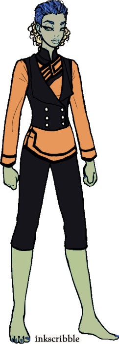 Genetic Oddities: She is a blue-person. like her dad! like sister Shatter Celeste, and like an increasing number of others around the Protectorate. She has short, slender, sharp spines on her arms (not seen yet), clawed fingers and toenails, and has four-fingered hands rather than 5 digits, like Shard. Oni does have a much stronger mental ability than most, while not actively telepathic like H'lis or some others, she is strongly able to resist being 'read', as well as having a connection to her family bloodline