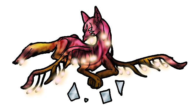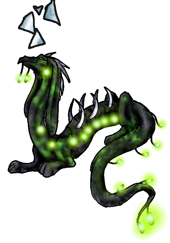 That thing turned out to be a very patient, mottled colored beast from another world. Perhaps he'd scooted in while everyone was playing broomball , there were lots of open portals around. And Ben thought he had seen that kind of weird floaty-glass stuff somewhere around here before. "I am Gondolni," said the creature in a strange, glass-on-stone voice. "I wish to remain with you, travel with you, if I may? I have heard that you are a philosopher - I am a bit of one myself." Ben's eyebrow shot up, but he remained silent while nodding. After a moment he said, "yes, of course, I just hope you don't mind the kids..." "I have never had offspring," Gondolni said, tilting his head and allowing his long ear to touch the ground. Just then was when Kate and Gray came bolting in, cheering and giggling with the kids, Ben's wife looked at the unusual hades-beast and appraised him with a nod. "Nice, you've found one of those too - Desmond has one similar... not so similar," she looked around. "This one's got no wings." They settled back down, Lydia and Maddie were entranced by the glowing colors, and Gondolni looked wistfully at them, perhaps he would find a way to procreate, some day... ( I do still like the black and green for him but really it is rather emo; also the lack of easily available information makes it hard to justify keeping for breeding) |