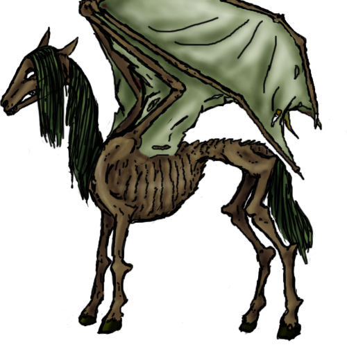 Unnamed Thestrals and 'Deadpet' with no name or information, originally found on zora_domina / dom-uma Uma's page