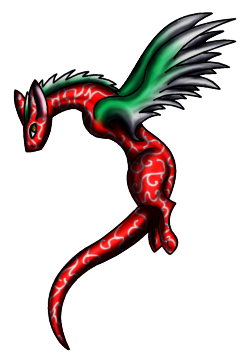 --Coloration: Red w/Silver Patterning and w/ Color-Fade (Green to Silver) wings