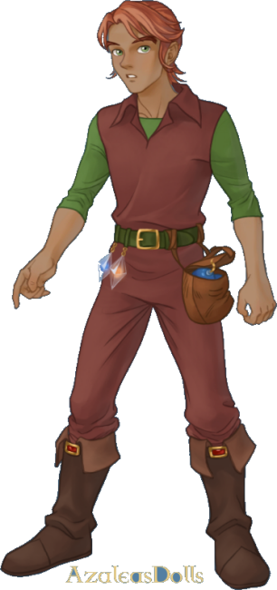 Appearance: ruddy skin that tans into a strong copper shade, having numerous small scars from his early life on the streets. However, he is quite good looking, and as he grows into adulthood there will doubtless be quite a few ladies giving him more than a little bit of attention. There's a reason the ladies at the Golden Cat keep mentioning him or whispering about 'when he's older', and he may very well have a good side-gig there if he chooses. He wears simple gear as shown, his boots made soft and silent, and he adds a cloak with pockets aplenty if he's on a job