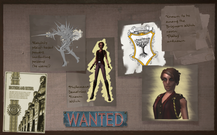 Daughter of a merchant, once pledged to wed ... some old dude, she never even met him. Instead the moment that betrothal was announced, she vanished from her parents summer cottege in Baleton. Stealing aboard a whaling vessel headed to Dunwall, and loaded up on her family's stock of deadly hemlock just in case, she met up with a group of witches... their leader, Delilah, marked by the Outsider and granting them amazing powers. Philomena practiced with these witches for three summers before realizing that they were a bit... blood thirsty. But she couldn't break free from them without being killed by the Abbey. So... after waiting, she ran again, when Delilah vanished and Emily Kaldwin was put on the throne. Somehow she's found her way through the Void, to this odd place, more modern and amazing than she could have dreamed. Even in the Void. Her magic flows even in Paragon City, and she will use it wisely. When she returns to The World, though she does not have the Mark of the Outsider, her abilities with darkness and plants, as well as fire and protective warding are all remarkably strong. |