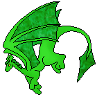 While it did take a while for the flitter egg that they'd selected to hatch, it finally did - and Gemstone was her name, a little emerald flitter (not actual size though it would be to the above stage of Quiffa's growth). You'd think that perhaps Purrnace might have tried eating the flitter, but no, they seem to get along famously. In fact Purrnace is now much more likely to be curled up on either Lyra or Quiffa's lap when they're lounging around after classes or events, draped by the bright flitter's tail.