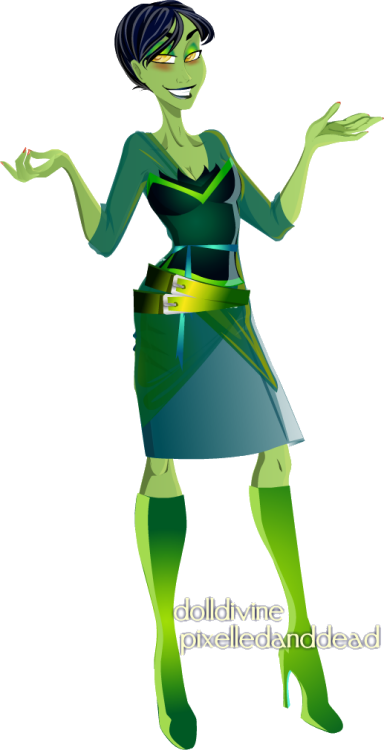 Appearance: with skin that is lime to grassy green she does stand out a little, even among Twoarth furries and humanoids. She is also slightly furry with a velvet texture to her skin, betraying her nonhuman ancestry. Cyvelle's ears really ought to be pointed and slightly longer than shown but for whatever reason, they are entirely-normal-human looking - and she continually checks that fact by unconsciously leaning her finger onto them casual-like to make sure. Rounded. Short. Good okay. Her face is quite pretty until she starts letting her fangy teeth show, or if she accidentally lets out a yawn, since her mouth is... quite a bit w i d e r than it ought to be. But she still smiles warmly and sometimes has a conspiratorial glimmer in her eyes. Stylish and picky about her wardrobe. Her feet are somewhat larger than you might expect, if she's not wearing boots or somehow magically concealing them, they... fill those boots very differently than human toes might. Also yes if you catch a glimpse of her in a bathing suit she does have a nubbin of a tail. She has a strong voice, including her singing tone which can reach several octaves not typically possible among humanoids. Smells of evergreen tree sap.