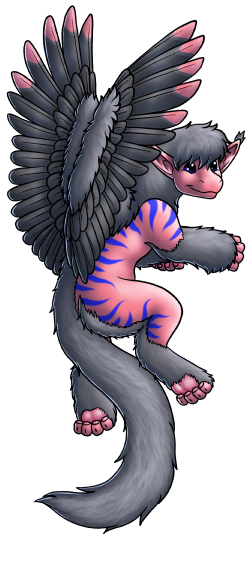 With that said, Cyvelle smiled widely - one of those toothy smiles that unnerved her human friends - and vanished again. But she had only been gone for a moment, when the little pink Terigon heard or rather felt a vibration. All the sand tumbled from her fur, from between her nails and their sheaths, and her feathers. Also a range of weak feather dust, loose fur... When Cyvelle showed up again it was at her normal Humanoid height, and she reached down and made grabby hands.