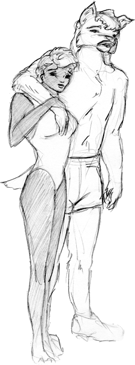 She barely came up to his shoulder, even in heels, but today she looked him in the eyes with a broad smile. Even if there were tears in hers, they were of joy and amazement, rather than any sorrow he'd helped soothe away from her. "I'm so proud of you," he said. His mustached muzzle was smooth and not bristly, she could always tell when he was riled up by whether that mustache had a padding of forward-facing whiskers. (Yes, he had both...) Ali snugged her arms around his narrow hound waist, he was her warm fluffy pillow, her keenly listening friend, her heart and soul.