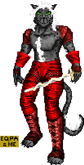 Zh'mrrel is a world of cats. They're humanoid, even breedable with certain kinds of demi-human types. Everyone loves cats, right? It's also a place where personal ability is highly valuable and curiosity hardly kills the cat - who knows how to exploit their own worth. When the Nexus and spaceways opened this world up to Humanspace and technology from the stars, the Zh'mrrel people were captivated by it if not obsessed. And while they are often not found in certain industries, the Zh'mrrel people figure the better educated their kids are, the better chance they have in the long run. To this end, then, students from this world were selected to come to Carramba High. The knowledge that the world upon which the school sits is 'half and half' furry and human, delights most Zh'mrrel. So kits by the dozen were moved from their tribes, homes, and families to Twoarth. Three of these kits, sent originally when they were barely over 10 (able to hunt small prey for themselves and bathe, etc, but not what many would consider 'too mature to learn' from their experiences) are Omuni, Yisi, and Thumao. They've grown up together, doing most of the things that their people would have provided - along side the other Zh'mrrel staying in the complex where the school has them all living. Grooming each other, playing pranks and sleeping all in a pile, they have formed a very tight relationship. Thumao, sent knowing that he would be retrieved at a later date and expected to perform certain duties for the religious cult that 'found' him (no one knows who his mother is, it's not uncommon to have orphans brought up by sects) is begining to dread the day that he will be called upon. He truly is a piece of work. He's more interested in Earthly literature and writing poems, making people happy and occupying their time with parties, though he was indoctrinated into weapons training from an early age. He is taking two very important classes for that reason, both required by the elders of his church. But the moment he can, he's back playing games with local kids and watching fun events. Yisi, though younger than the other two, has proven to be the most incredibly lucky kit. If something starts to fall he simply moves to the side just before impact. If a bet is made and he's in on it he's often got the winning angle. He loves playing sports and doing insane stunts - even though he's not known for being a 'nut' type, he's not interested in truly death-defying stunts. However, he's also young enough that the urge to sleep is very strong, and has to keep pinching himself knowing that he'd drift off during a lecture or quiet moment at lunch. Omuni is a classic warrior-huntress type. Big and strong, deft to an extreme that not even most other feline-species can hold a torch to her skills. ...However, like many folks in her oversensitive condition (like her Posing instructor Sanger) every time a flashy object moves by her field of vision she tends to jump for it and pounce (hence her nickname!). When she goes home to Mrrel she is expected to become a valuable hunter - but she thinks staying on here to play professional games would be great. Cars terrify her, they're loud and smelly and they alone pose a chasing hazard to her quick feet. As they waited for their turn at the sands, Omuni was (of course) distracted by a twitching of ... something... in her vision. Following it, she began to stalk. The other two followed her to find the Fazzle Patch! Now each of them has their own unique fazzle, things that are durable enough to be played with - maybe even chewed - but with a little loving care and sprinkle of water, are self-sufficient. Woe to anyone standing - or just living in general - at Lantessama right now, if they have anything shiny or smelly or fun to play with... It will go missing. It'll be found in their quarters, of course. And the trio will hardly complain when someone brings their posessions back to their own dorm. But they're a little unclear on the topic of 'ownership' of things like pretty jewlery, string, anything that dangles, or shiny materials (like... money?). |