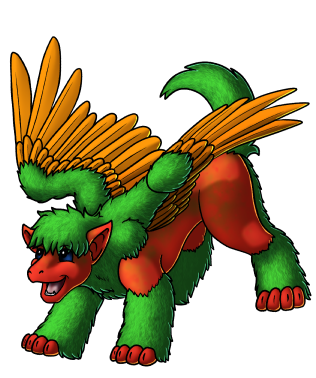 | Name: Dieja (DEE jah) Gender: Female Size/Shoulder/Length: little 2'1" shoulder Colors: Red Green Orange Brown Features: Terigon, as shown Genetic Code: Ss E2E4 WW tt Y2Y4 C5C8 Ll X8X8 Uu I3I4 Nn P4P6 R2R4 Aa Ss (average 2') body size E2E4 (short) ears WW (plain) wingtips tt (short bushy) tail Y2Y4 (dark blue) eyes C5C8 (red) body in Ll (medium) value X8X8 (green) furnishings in Uu (medium) value I3I4 (orange) wings in Nn (medium) value P4P6 (mottled pattern) in R2R4 (brown) color in Aa (medium) value Recessive P6: Foundation Wildcard, meant for breeding, pair with other P6 Powers: Winged Flight She's quite small but still energetic in the air, though she's more likely to fly only in open halls or domes, rather than in the club or confined quarters. She doesn't want to bump into anything or smack drinks trays around after all. She can fly in pretty good winds and difficult conditions, including 'smoke filled bistro' atmospheres Teleportation, local and Nexus; she will generally use teleportation between the kitchen and bar and your table at the club, though she has a perch above the bar to make sure that the area is clear before doing so. Oddly, the sound that her teleportation makes isn't a 'pop' so much as a 'clink'! Her local range is pretty much the whole ship, though there are places she hasn't and probably won't go into due to dangerous conditions or just not having any interest (while it's certainly there, the engine room as well as the private quarters across the place are ... well, nope! those aren't her domain unless someone invites her). She has a short list of worlds to visit when they're on tour, Nexus-wide she has as good a memory for places as she does with the menu, so if there's a location that has a specific ingredient, or a place that's known to produce allergens to some visitors, Dieja will warn or remind Verbal Speech and Telepathy; can speak very clearly in a loud and crowded bar, but won't use the 'loud voice' in an inappropriate setting. She can rattle off every ingredient available for those weird cocktails, though not necessarily their amounts or preparation as that's not her job. She instantly telepathically relays orders or at least 'when the order is ready to be made', and Bisimuu appreciates the clarity - and patience - that Dieja shows him Parentage: below Origin: Terigon Pairings by Phe Other Info: That splash of red and orange just means that your table is ready and you should place your order! Yes with Dieja! She has an incredibly good memory, though mostly short-term to keep all those orders of hors d'oeuvres and drink samplers straight from table to table. But if she spots you coming in to the club regularly, she'll definitely commit those orders to a longer-term (and growing) list in her mind. |